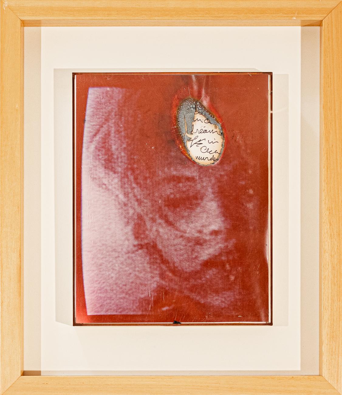 Alain Arias-Misson, Teledream (alias Murder), 1980, stampa fotografica e combustione su carta scritta a china sotto plexiglass (installazione di 12 esemplari monotipo), 36 x 28,5 x 3,5 cm (singolo esemplare)